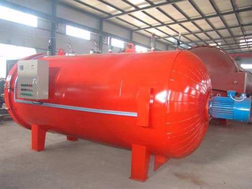 電加熱硫化罐通過活動接軌和接引小車將所需進行加工的產(chǎn)品裝入硫化小車通過軌道和接引小車進入硫化罐內(nèi),待其結(jié)束工作,再通過硫化小車把硫化產(chǎn)品運輸出來。